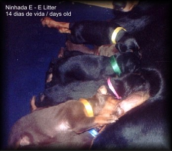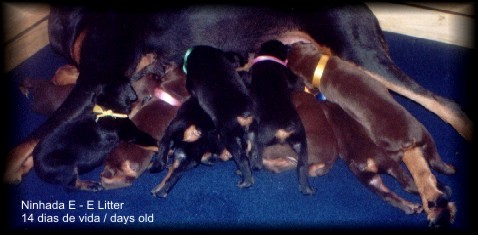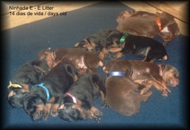 Ninhada nascida em 14 de Novembro de 2002 4 fêmeas pretas, 3 fêmeas marrons, 1 macho preto e 2 machos marrons