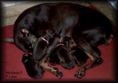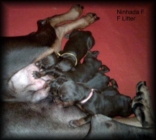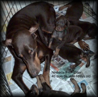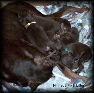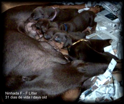 Ninhada nascida em 30 de Julho de 2003 2 fêmeas marrons e 3 machos marrons