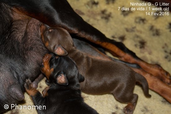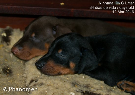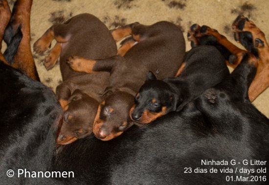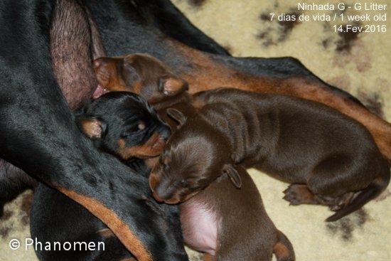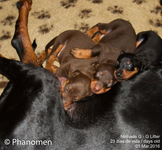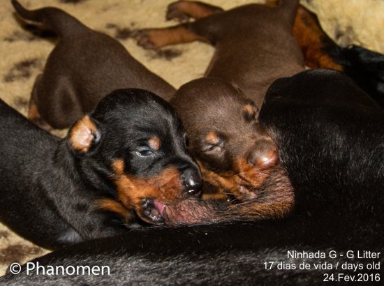 Ninhada nascida em 7 de Fevereiro de 2016 1 macho preto, 1 macho marrom e 1 fêmea marrom