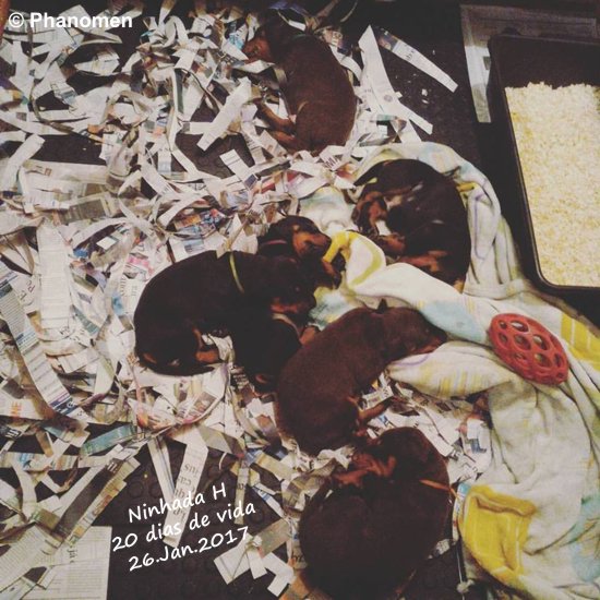 Ninhada nascida em 6 de Janeiro de 2017 2 machos e 1 fêmea marrons, 2 fêmeas e 1 macho pretos HOOLIGAN - HUNTER - HARKO - HAYA - HELGA - HIRINA