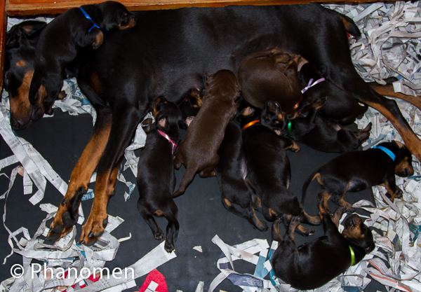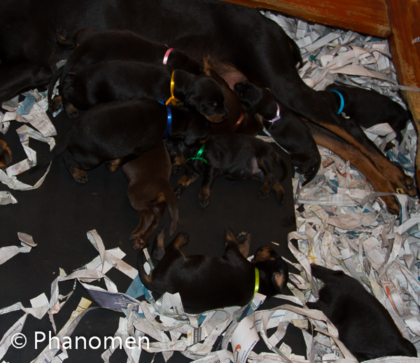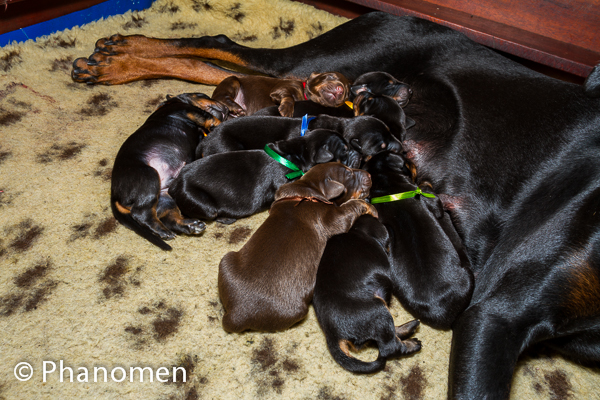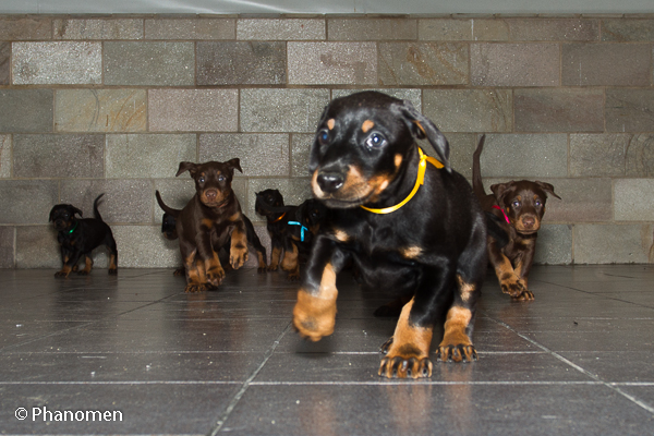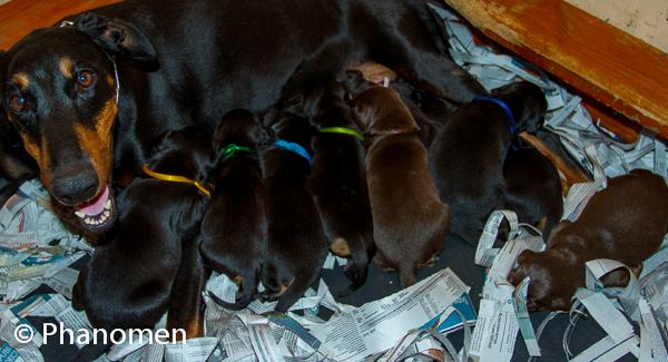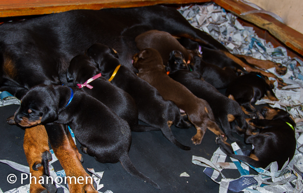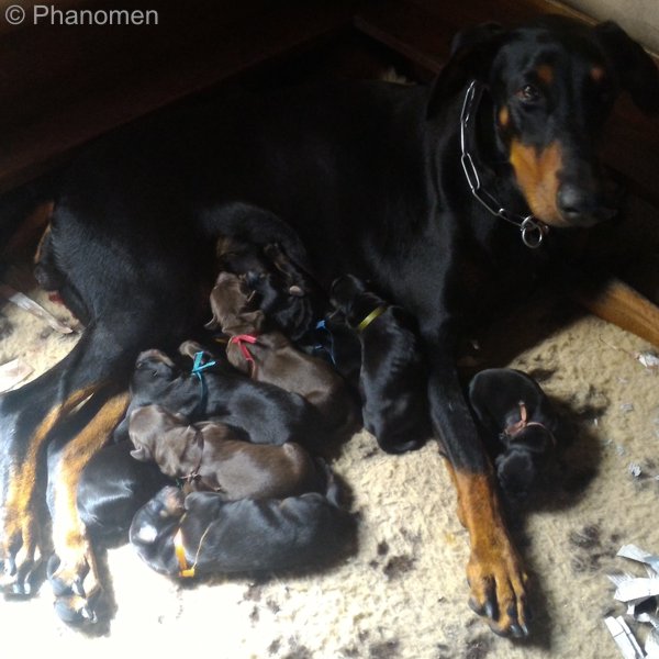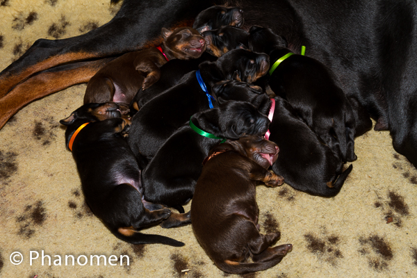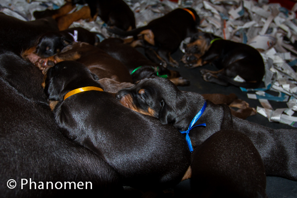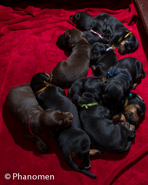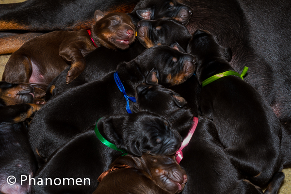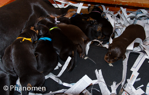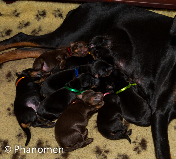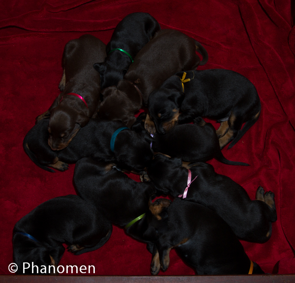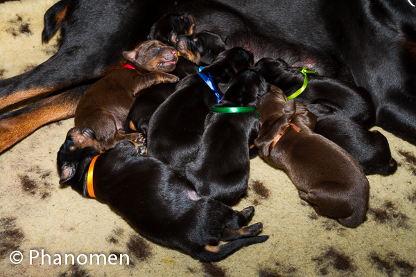5 machos pretos, 1 macho marrom, 3 fêmeas pretas