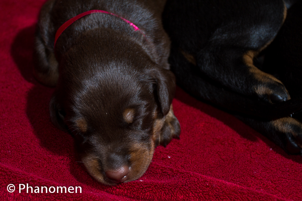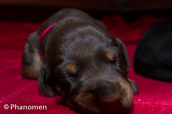 Fêmea fita pink com 28 dias de vida. Foto do dia 29 de Dezembro de
