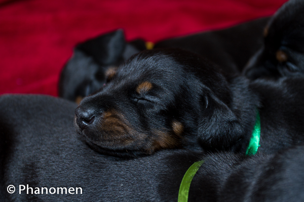 Fêmea fita verde com 28 dias de vida. Foto do dia 29 de Dezembro de