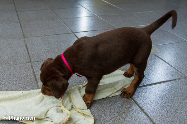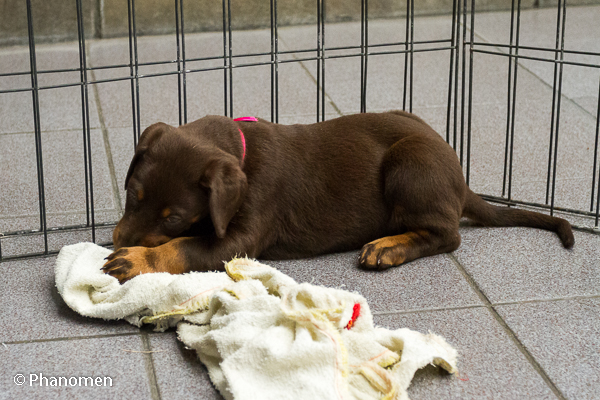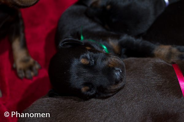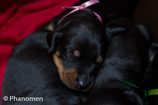 Fêmea fita pink com 42 dias de vida. Foto do dia 12 de Janeiro de