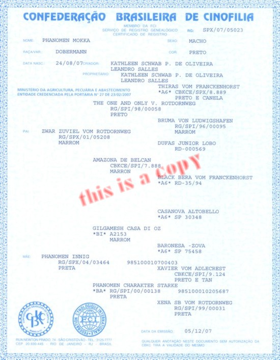É importante saber reconhecer o pedigree emitido pela Confederação Brasileira de Cinofilia (CBKC).