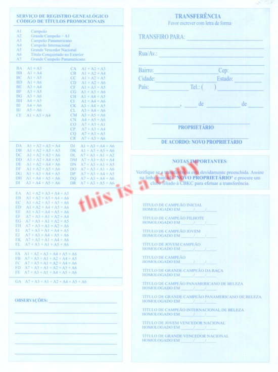 somente R$ 50,00! Portanto, o Pedigree propriamente dito NÃO custa caro.